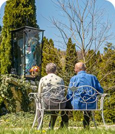 Zebrane doświadczenie pozwoliło nam podjąć decyzję o wprowadzeniu metody ,,Montessori Senior”. Polega ona na aktywizowaniu mieszkańców, angażowaniu ich w codzienne życie domu, tak by mieli poczucie sprawczości i czuli się potrzebni. Sprzyja temu położenie domu w iście arkadyjskiej okolicy, nad brzegiem rzeki Dunajec. Na pierwszy rzut oka budynek ośrodka swym wyglądem nie odbiega od zwykłego domu. Otacza go ogród, zmieniający się wraz z porami roku – wiosną kwitną w nim forsycje, latem do budlei zlatują się motyle, a hortensje cieszą oko do późnej jesieni. Nasi podopieczni chętnie spędzają czas na łonie natury, odpoczywają w cieniu wierzby, rozkoszują się szumem brzozowych listeczków czy też aromatem sosen. Rozpościerający się przy domu zagospodarowany, rozległy taras pozwala nie tylko zażywać kąpieli słonecznych, ale również obserwować z niego okolicę. A pejzaż jest sielski, bowiem z naszą posesją sąsiadują łąki, na których wypasane są owce i krówki. Tam też pojawiają się bociany. Horyzont zamknięty jest łagodną zielenią lasów porastających pobliskie wzniesienia. Na co dzień towarzyszy nam kot dachowiec o wdzięcznym imieniu Rudy oraz trzy kanarki rasy Fiorino.